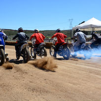 Pull-start mini bikes were back on the oval on Sunday. Ranging from classic mini-bikes that would have been on the sales floor of Sears to custom built specials, the class has become one of the most popular at CALVMX events. Their main event featured five separate classes lining up at the start. In the Masters Open Expert division Brett Miller led at the start. His main challenger was Masters Open Novice entry Chance Rose. The two waged a heated duel, with Rose leading for most of the race. Not conceding, Miller closed in on Rose and got a good drive down the back straight, and moved past Rose to take the win by a few bike lengths.